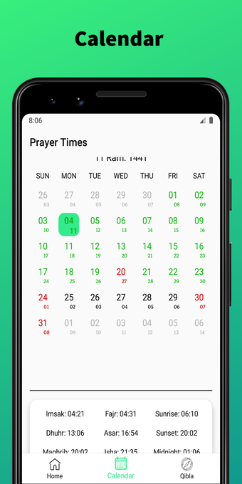 Prayer Times - Athan, Qibla Finder & Calendar-appen är också ett användbart verktyg för de som är intresserade av den islamska kalendern och alla viktiga händelser som äger rum dagligen. Här kan du ta reda på all nödvändig information om den islamska kalendern, inklusive de viktigaste händelserna som kommer att äga rum i år, och mer.